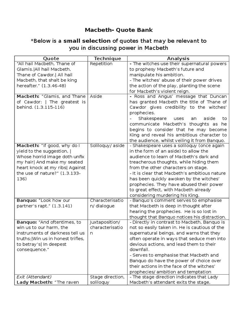 Key Quotes Macbeth Englishbreakfastblog